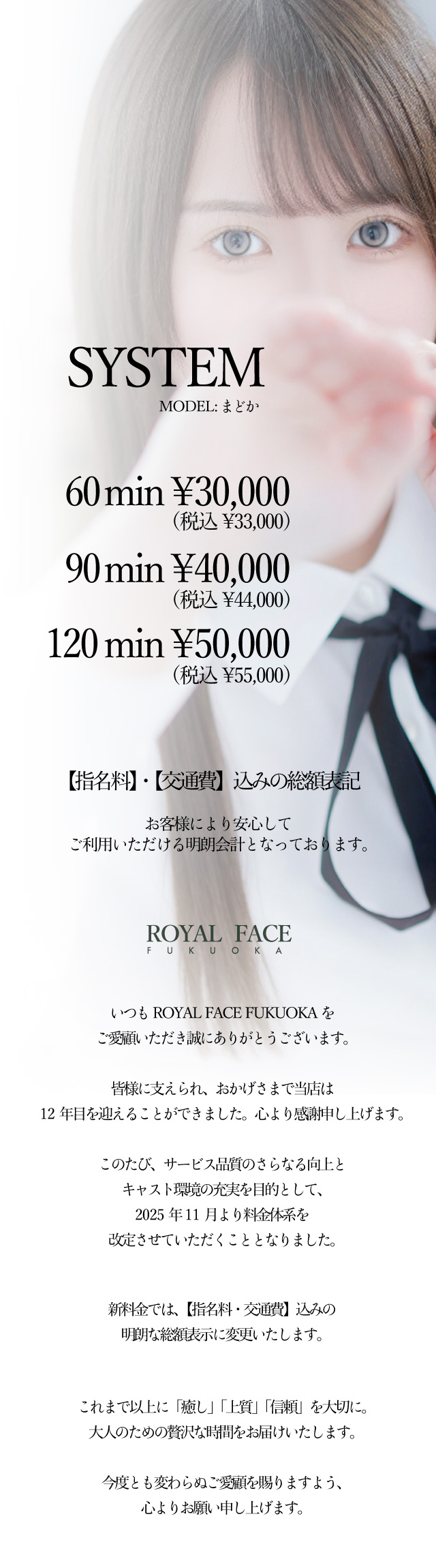 90分¥44,000→ ¥40,000120分¥55,000→ ¥50,000NET指名料込み!!